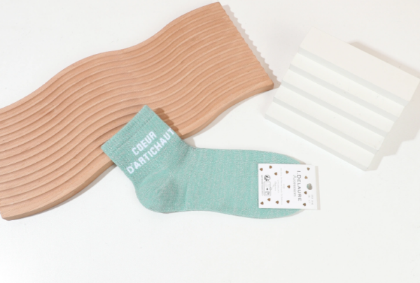 5,90 €Ces chaussettes vertes à paillettes et petit message apportent une touche lumineuse et originale à chaque tenue. Le vert est délicatement rehaussé de fils scintillants qui captent la lumière avec subtilité et élégance. Un petit message discret « Cœur d’artichaut » vient signer le modèle et lui donner ce supplément d’âme qui fait la différence. Douces, confortables et extensibles, elles enveloppent le pied avec légèreté pour un porté agréable au quotidien.