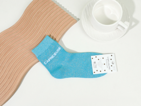 5,90 €Les chaussettes à paillettes et petit message bleu turquoise incarnent une allure fraîche et pleine de personnalité qui illumine toutes les tenues. La teinte bleu turquoise intense met en valeur les fils couleur métallique délicats pour un effet scintillant chic et dynamique. Le message « Capricieuse » imprimé avec style ajoute une touche d’attitude et de caractère, parfaite pour affirmer votre singularité. Conçues dans une maille douce et extensible, elles assurent un confort léger et agréable du matin au soir.