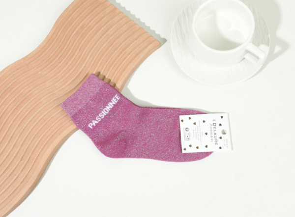 5,90 €Ces jolies chaussettes mauves marient une maille de coton ultra-douce à un fini scintillant pour ajouter une note de poésie discrète à votre style quotidien. Le petit message « Passionnée » brodé délicatement au sommet souligne votre personnalité avec beaucoup de tendresse et de modernité. Grâce à leur bordure souple et élastiquée, elles épousent la cheville sans jamais la marquer pour un confort qui dure toute la journée. C’est l’accessoire idéal pour personnaliser une paire de baskets ou laisser dépasser un détail pétillant de vos bottines préférées.