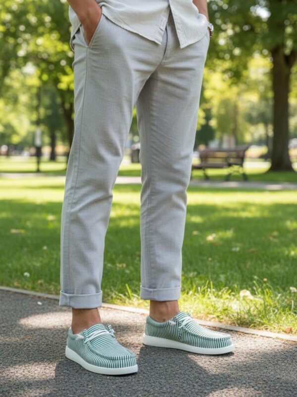 Choix des options Ce produit a plusieurs variations. Les options peuvent être choisies sur la page du produit Quick View34,95 €Ces mocassins en toile marinière à rayures vertes de la marque UOMO misent sur un tissu léger et une semelle en PU souple pour accompagner les journées en toute sérénité. La toile respirante permet de garder une sensation agréable même lorsque les températures montent. L’intérieur textile assure un confort naturel et un bon maintien au fil des heures. Inspirés des slip-on modernes, ces mocassins casual présentent une coupe basse et un motif rayé vert qui apporte une touche originale. Parfaits pour les vacances, les promenades ou les instants de détente, ils complètent facilement une sélection de tenues d’été homme.