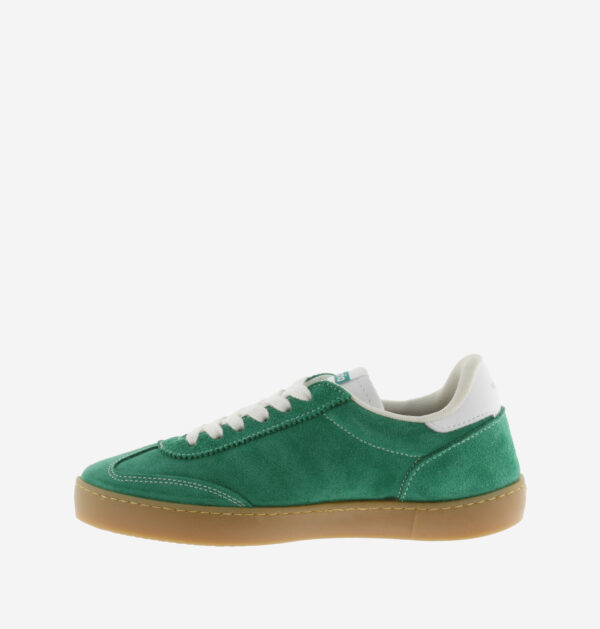 Les baskets Victoria Berlín Ciclista Daim vert affirment une allure rétro inspirée de l’univers cycliste, sublimée par un daim souple et lumineux fabriqué en Espagne. Le “V” latéral blanc et la pièce arrière contrastante dynamisent la silhouette tout en renforçant l’identité iconique de la marque. Les lacets blancs et les surpiqûres apparentes soulignent les lignes du modèle avec précision et caractère. La semelle en T.R. translucide couleur caramel apporte une touche vintage distinctive et assure une adhérence fiable au quotidien.