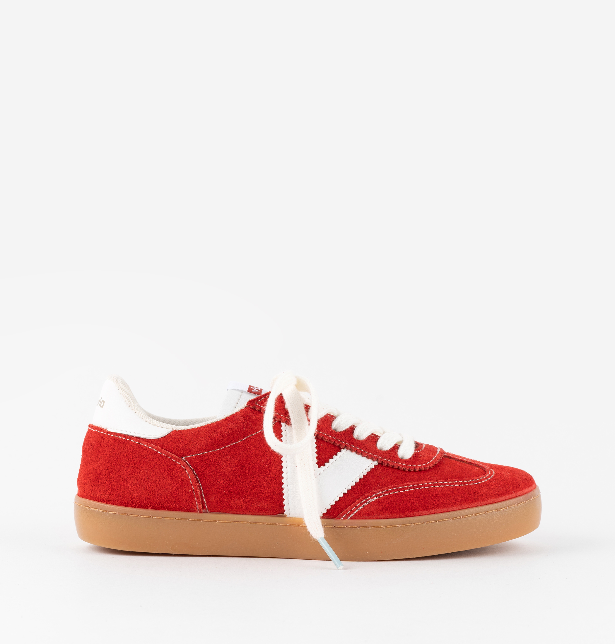 Les Baskets Victoria BERLÍN CICLISTA DAIM rouge affichent une teinte vibrante et audacieuse qui apporte du caractère à toutes vos tenues. Le V latéral Victoria et la pièce arrière en blanc contrastant créent un jeu graphique dynamique, tandis que les lacets blancs et les surpiqûres ton sur ton renforcent l’esprit rétro du modèle. Leur semelle translucide couleur caramel ajoute une touche vintage chaleureuse qui sublime le daim coloré. Fabriquées en Espagne avec une semelle intérieure recyclée, ces sneakers unisexes allient style affirmé et démarche responsable.