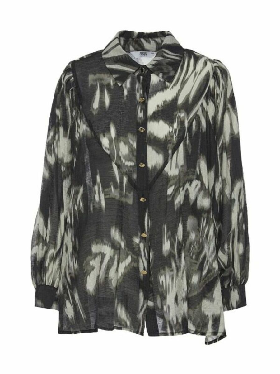 Cette élégante blouse noire imprimée BSB se distingue par un imprimé graphique raffiné qui apporte une touche de modernité à toute silhouette. Sa coupe fluide et ample assure une liberté de mouvement totale tout en conservant une allure élégante. Les manches longues bouffantes structurent la pièce avec délicatesse, complétées par un col classique et une fermeture boutonnée discrète. Ce modèle léger est la pièce idéale pour composer un look de bureau chic ou une belle tenue de soirée.