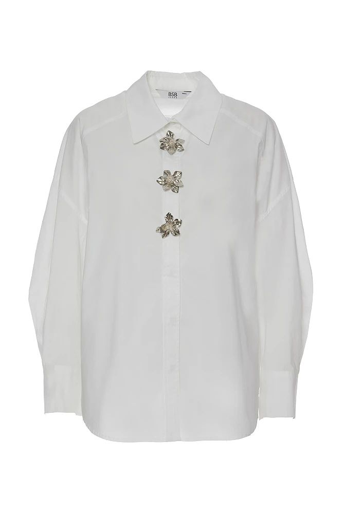 La chemise femme BSB à bouton décoratif blanc se distingue par sa coupe régulière en coton 100 % qui associe structure et douceur pour un confort durable. Les manches longues et le col classique renforcent son allure élégante, adaptée à des styles casual ou plus travaillés. Les boutons décoratifs bijoutés captent subtilement la lumière, créant un détail raffiné qui enrichit la silhouette. Son design épuré avec fermeture frontale met en valeur la simplicité chic intemporelle propre à la collection BSB.