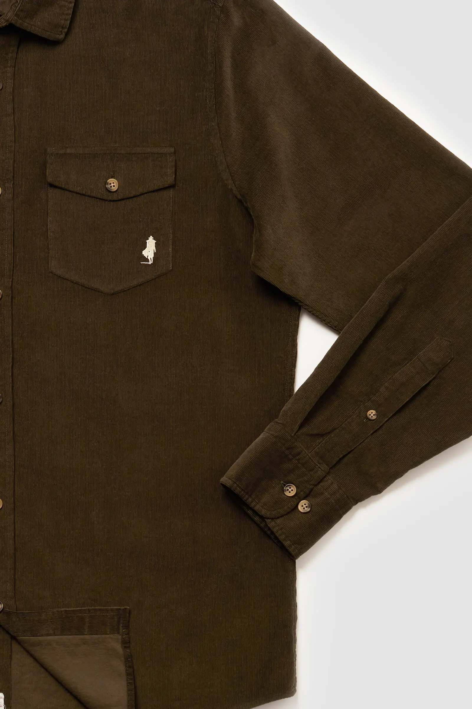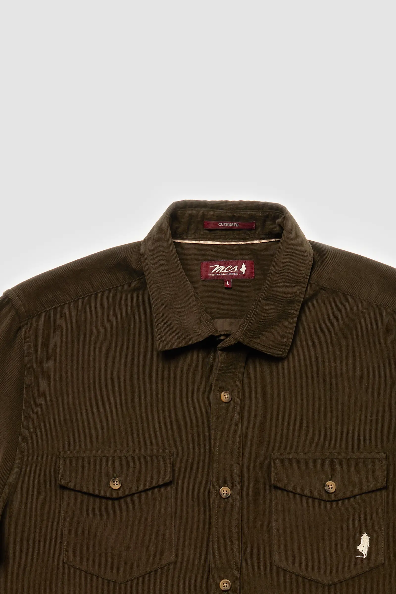 Chemise unie velours côtelé deux poches Vert Kaki – MCS
