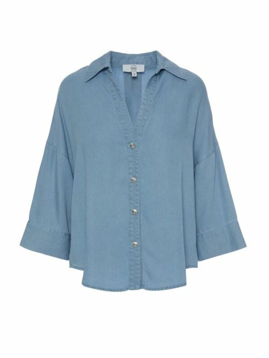 Ce chemisier BSB à manches 3/4 affiche une élégante teinte bleue effet denim qui apporte une touche décontractée-chic à votre garde-robe. Sa coupe regular fit épouse harmonieusement la silhouette tout en offrant un confort optimal au quotidien. Le col classique et la fermeture par boutons bijoux confèrent à cette pièce un charme raffiné et féminin. Sa texture douce et fluide en fait un indispensable pour vos looks de bureau comme pour vos sorties casual.