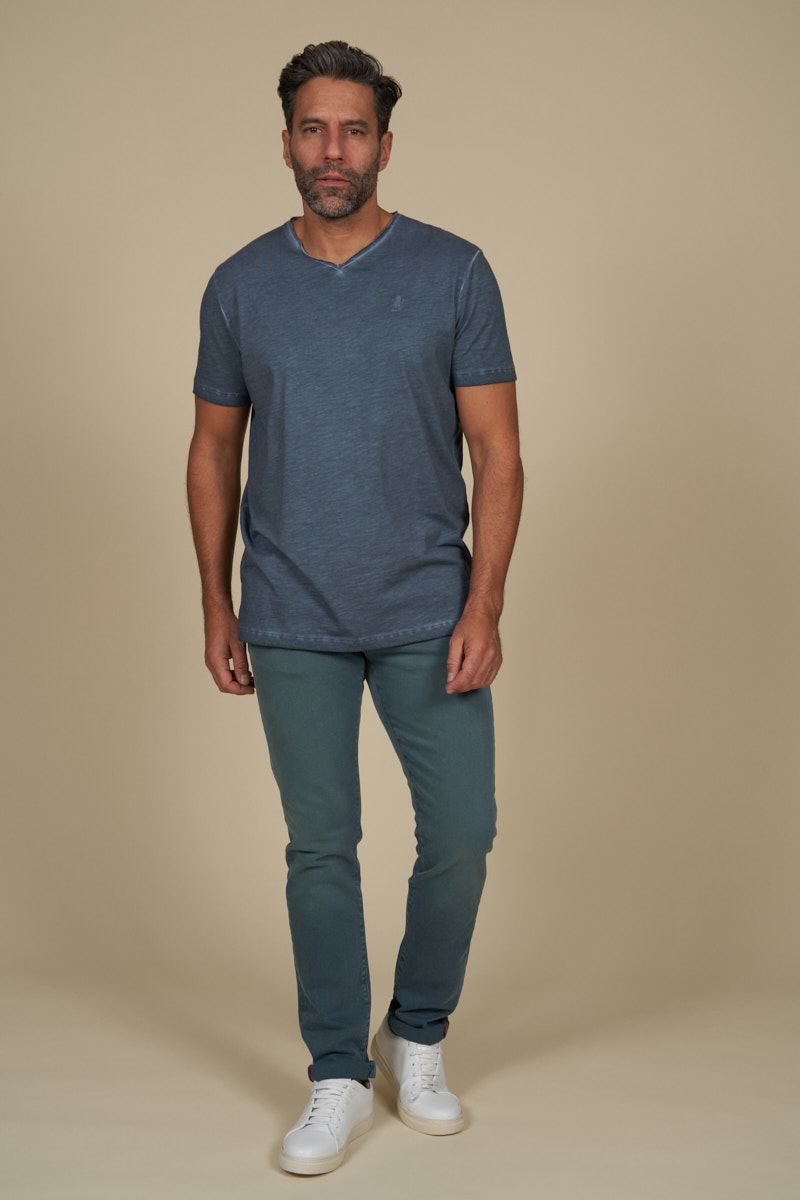 Ce jean regular tapered bleu pétrole pour homme de la marque MCS sort du lot avec sa teinte profonde qui change des délavés habituels, parfaite pour ceux qui veulent un peu de caractère sans en faire trop. La toile stretch suit les mouvements sans tirer ni comprimer, le genre de jean qu’on garde sur soi toute la journée sans y penser. Le procédé garment dyed et le délavage donnent à chaque pièce une patine légèrement irrégulière, comme si le jean avait déjà vécu un peu, et ça s’accentue au fil des lavages. Côté détails, la petite poche ticket avec son logo métallique apporte une touche finale discrète mais bien pensée.
