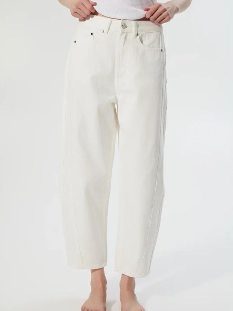 Les caractéristiques du pantalon barrel BSB en coton blanc