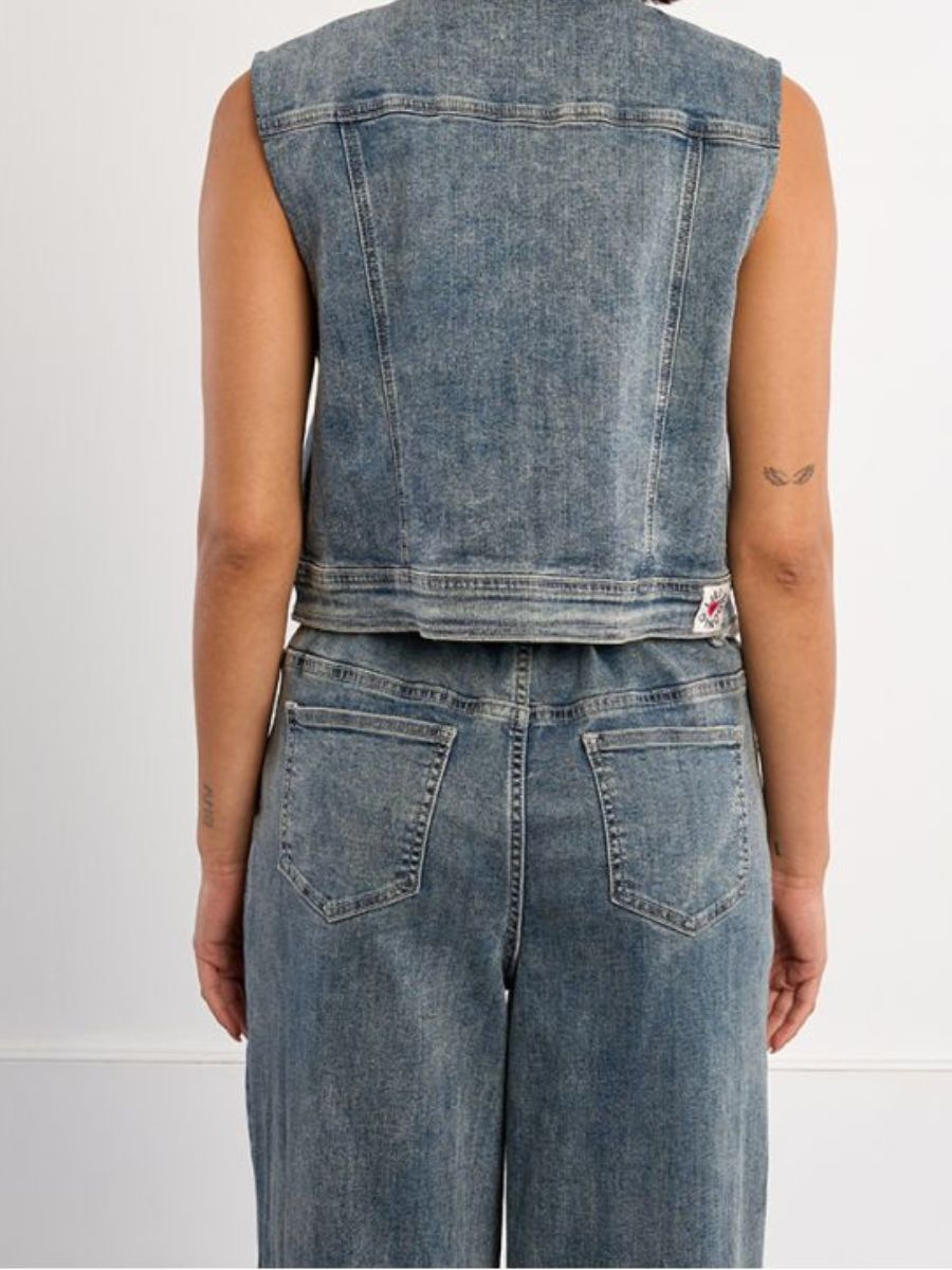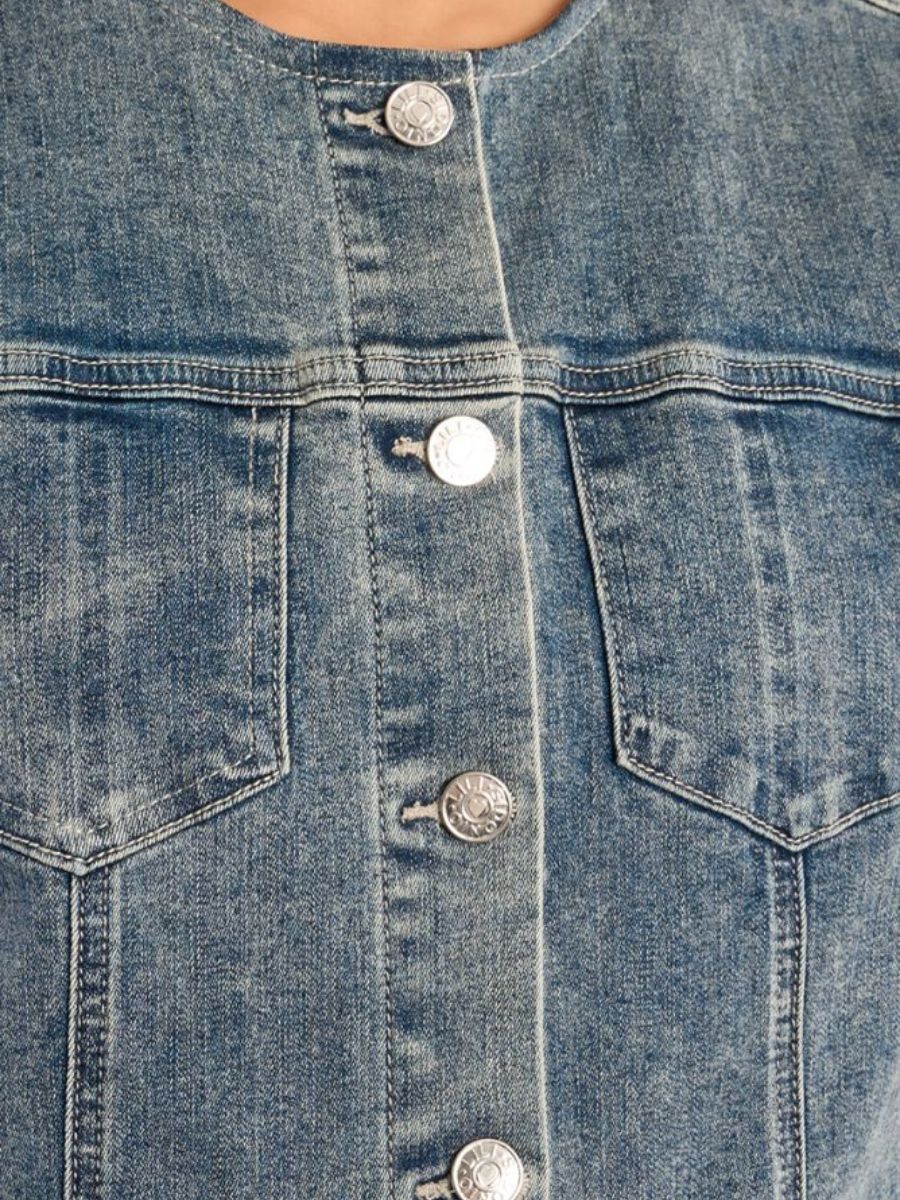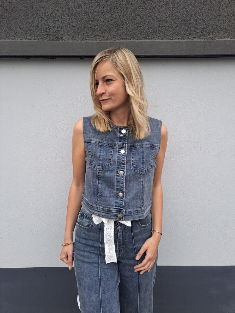 Cette veste denim sans manches bleu, signée Lili Sidonio correspond aux femmes qui privilégient un style décontracté et classique. La coupe droite et courte s’adapte à plusieurs morphologies.