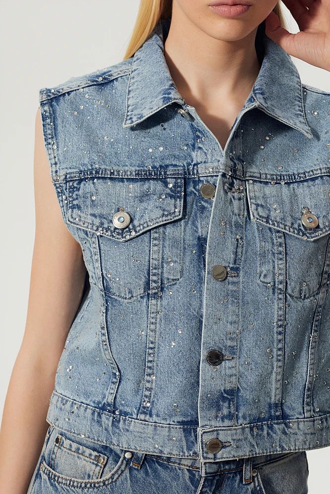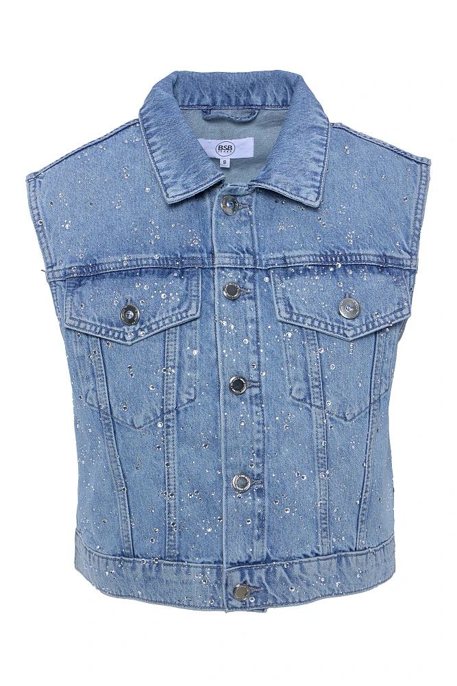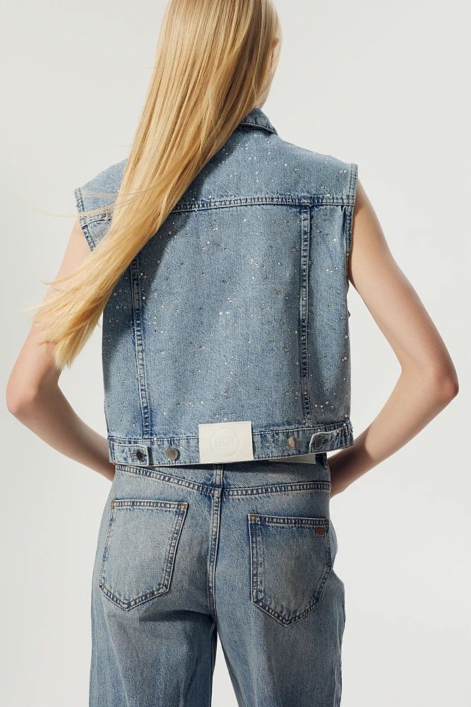 Cette veste en jean sans manches BSB se pare de délicats strass sur les épaules pour apporter une touche de lumière audacieuse et féminine à votre silhouette. Sa coupe structurée et son col classique offrent une allure moderne qui s’adapte aussi bien à une robe fluide qu’à un look total denim. Le jeu de boutons métalliques et les poches à rabat soulignent l’authenticité de cette pièce forte au caractère intemporel. Elle devient rapidement l’indispensable de votre garde-robe pour ajouter du relief et une note sophistiquée à vos tenues de saison.